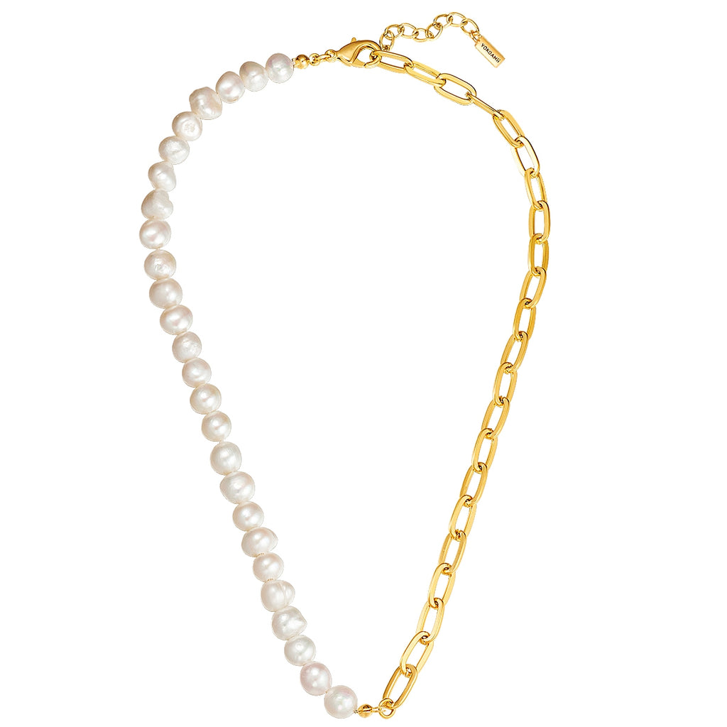 Kette gelbgold Süßwasser-Zuchtperle weiß