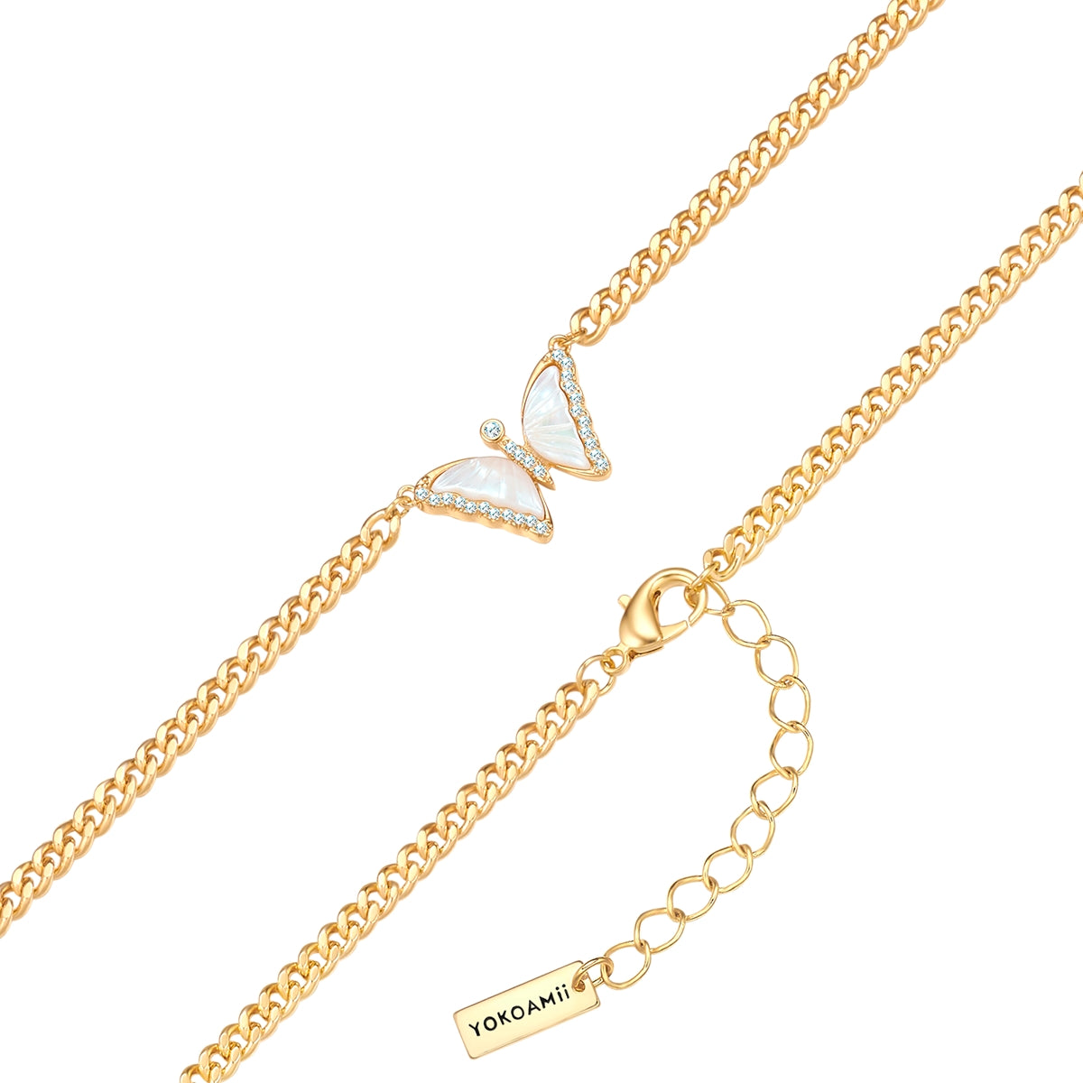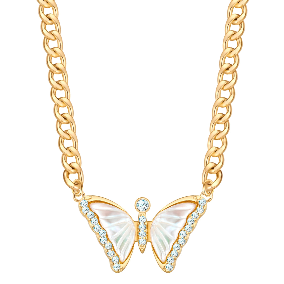 Kette mit Anhänger gelbgold Perlmutt weiß Zirkonia weiß