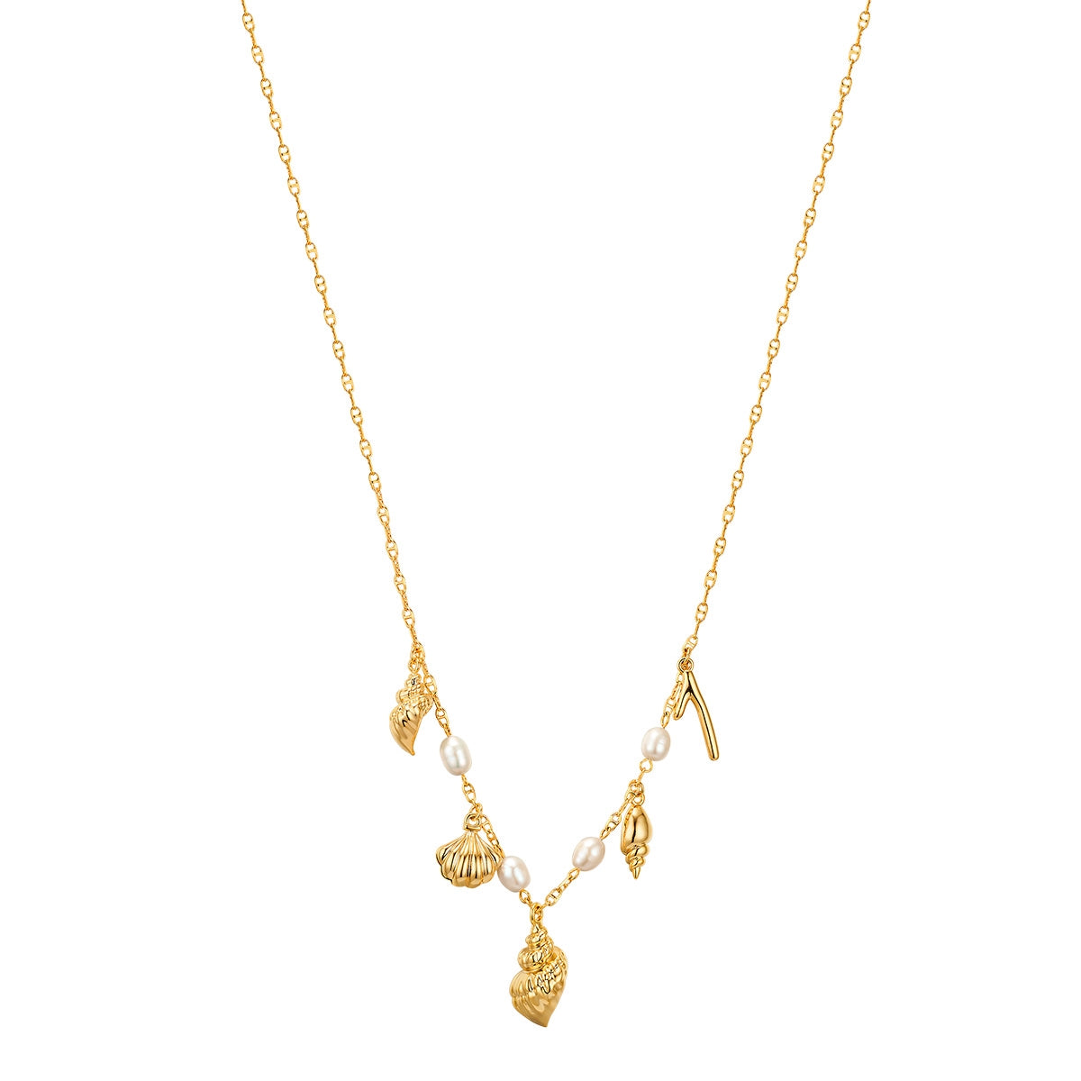 Kette mit Anhänger gelbgold Süßwasser-Zuchtperle weiß
