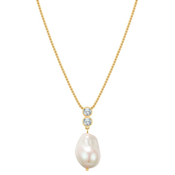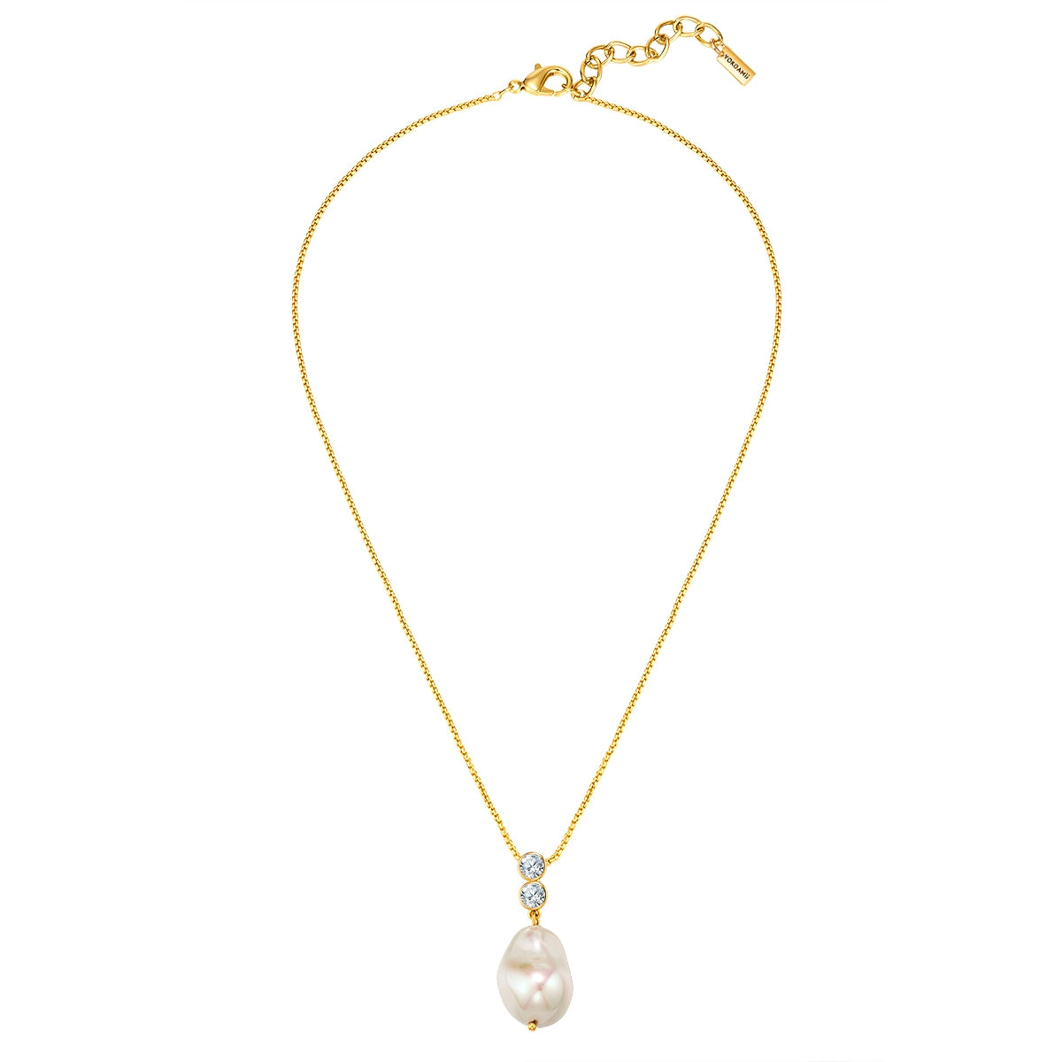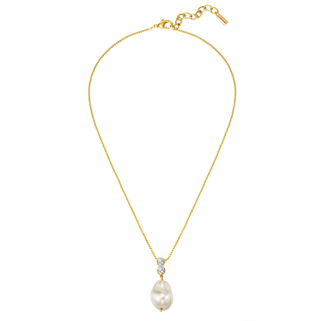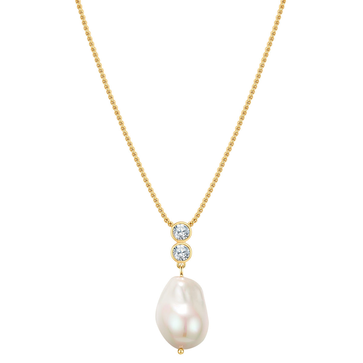 Kette mit Anhänger gelbgold Zirkonia weiß Muschelkernperle weiß