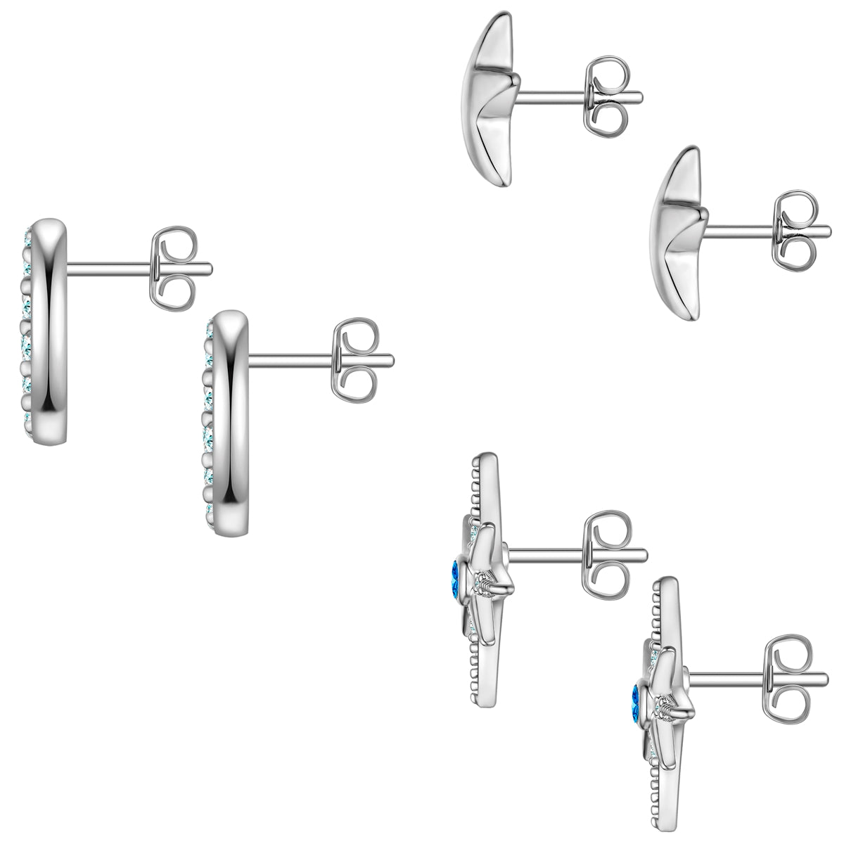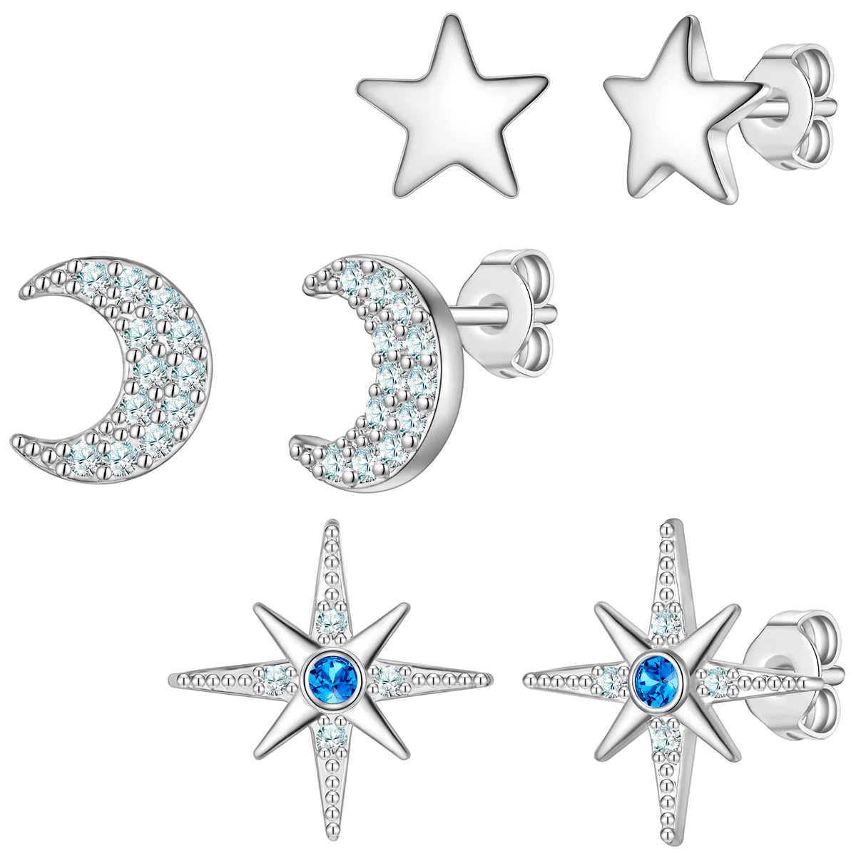 3er Set Ohrstecker Zirkonia weiß blau