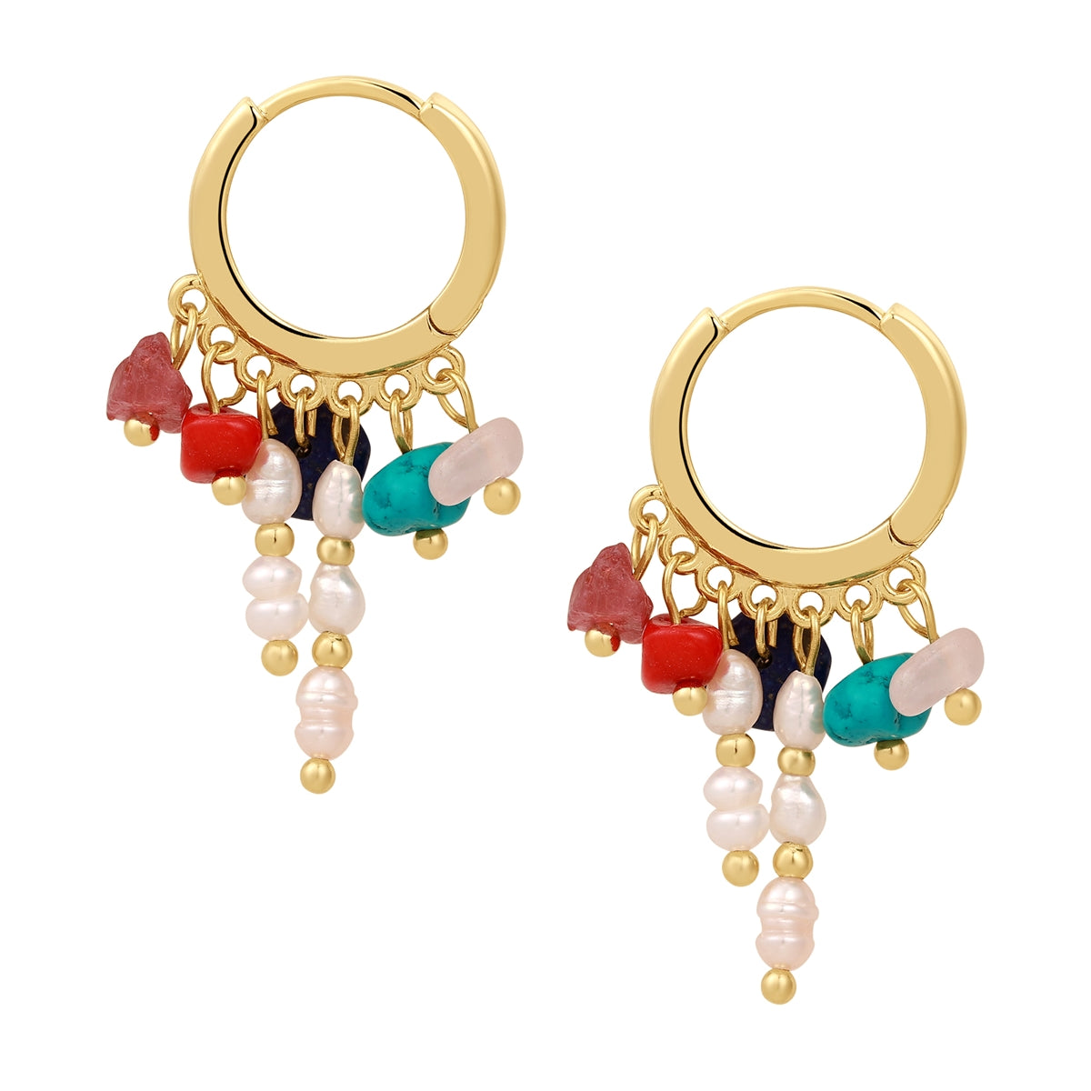 Creolen gelbgold Turmalin rot Lapis Lazuli blau Quarz rosa