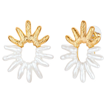 Ohrstecker gelbgold Perle (synth.) weiß